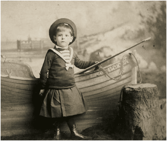 На многих дореволюционных фотографиях, сделанных в ателье, можно увидеть малышей в возрасте от года до трех в оригинальных платьицах. Но не все они были девочками. В конце XIX – начале XX века всех детишек до 4-5 лет одевали в платья с оборками. И никого это не удивляло. Считалось, что штанишки сковывают движения малыша, да и посещать туалет мальчикам в юбочках и платьях гораздо проще. В крестьянских и рабочих семьях ребята бегали в длинных рубашках. Заменяли платье на штанишки, когда мальчику исполнялось хотя бы 3 года. Хотя случалось, что ходили так и до 7 лет, все зависело от желания семьи.