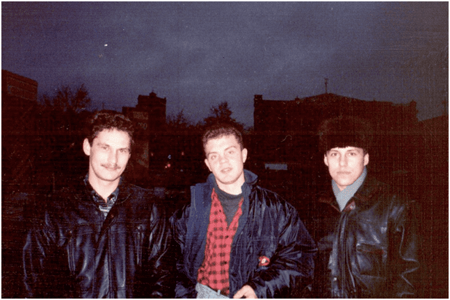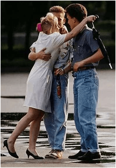 Главным атрибутом 90-х стали кожаные куртки, добавляющие владельцу веса и престижа. На вершине моды были короткие косухи для рокеров и бомберы для “правильных парней”. Тогда купить кожаную куртку по доступной цене было настоящим испытанием. Поэтому днепровская молодежь часто носила косухи с чрезмерно широкими плечами и слишком длинными рукавами – брали то, что было. Образ “крутых парней” формировали сериалы, и большинство юношей старательно копировали его. Обязательным атрибутом были и солнцезащитные очки.