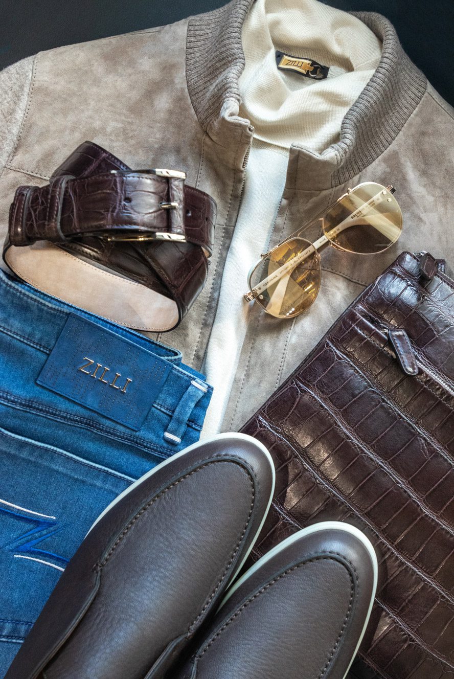 Верхній одяг: Zilli особливо відомий своїми куртками, виготовленими з екзотичних шкір, таких як крокодил, алігатор і страус, часто підбитими шовком і оздобленими розкішним хутром, таким як норка або шиншила.