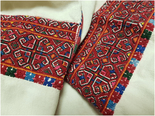 Для більшості українців вишита сорочка – це червоно-чорний хрестик на білому полотні. Але пані Мая з’ясувала, що ця техніка не була споконвічною для української вишивки. На українських теренах хрестик сприймали радше як допоміжний шов, бо сорочки вишивали гладдю, часто білими нитками на білому тлі. А хрестик у народ приніс француз Анрі Брокар, який пакував своє дешеве “Селянське” мило в аркуші з популярними на Заході схемами для вишивки. Серед яскравих орнаментів він залишив лише два кольори – червоний і чорний. І цей дует, простий, але емоційно виразний, невдовзі “прижився” в Україні.