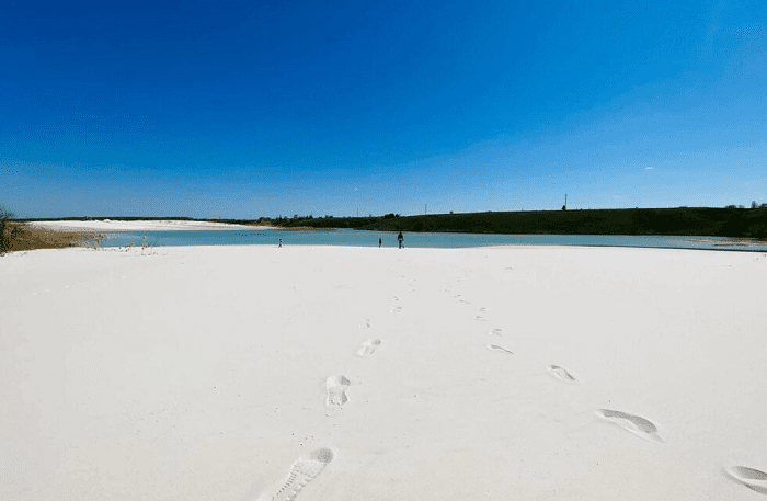 Вільногірські Мальдіви — відпочинок в Дніпропетровській області за 100 кілометрів від міста. На місці промислового кар`єру сформувався мальовничий куточок. Кришталево чиста вода з підземних джерел змогла заповнити штучно сформовану яму, тому водоймище має прекрасний лазурно-блакитний відтінок. Тут ніколи не цвіте вода, а пісок білого кольору додає красивий відтінок.